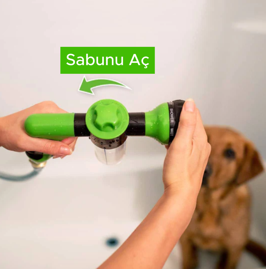 Köpeğinizin banyo zamanını daha keyifli hale getirin!Tek yapmanız gereken tabancayı bir bahçe hortumuna veya duş hortumuna bağlamak, şampuan haznesini doldurmak ve dilediğiniz sprey modunu seçerek köpeğinizi yıkamak.